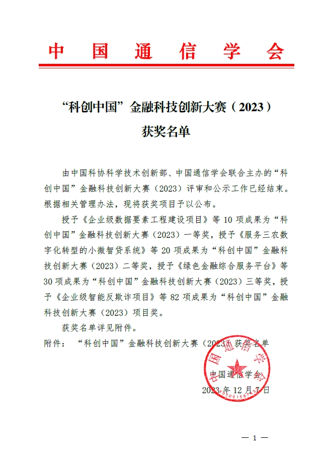 近日,由中国科协科学技术创新部、中国通信协会联合主办的“科创中国”金融科技创新大赛(2023)公布最终结果,神州信息九天揽月·云原生金融PaaS平台项目荣获本次大赛三等奖。