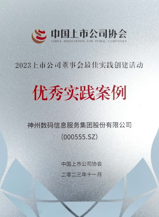 中国上市公司协会日前公布“上市公司董事会最佳实践创建活动”的评选结果,神州数码信息服务集团股份有限公司(000555.SZ)获评优秀实践案例。