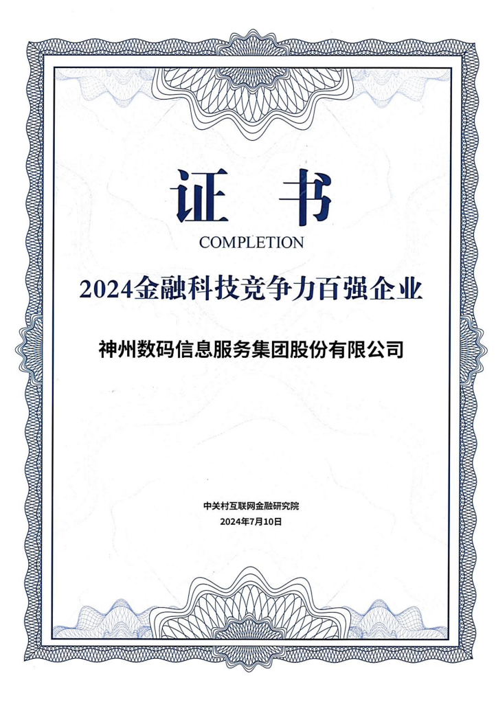 2024中关村论坛系列活动——数字金融与金融安全大会发布了《中国金融科技企业竞争力报告(2024)》,报告显示,神州信息获评“2024金融科技竞争力百强企业”。