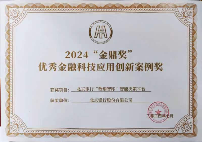 打造“数聚智库”智能决策平台助力北京银行荣膺“金鼎奖”