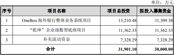 中国经济网北京9月2日讯神州信息(000555.SZ)于8月30日晚间发布2024年度以简易程序向特定对象发行股票预案,本次发行拟募集资金总额不超过30,000.00万元(含本数),扣除相关发行费用后的募集资金净额将分别用于OneBox海外银行整体业务系统项目、“乾坤”企业级数智底座项目和补充流动资金。