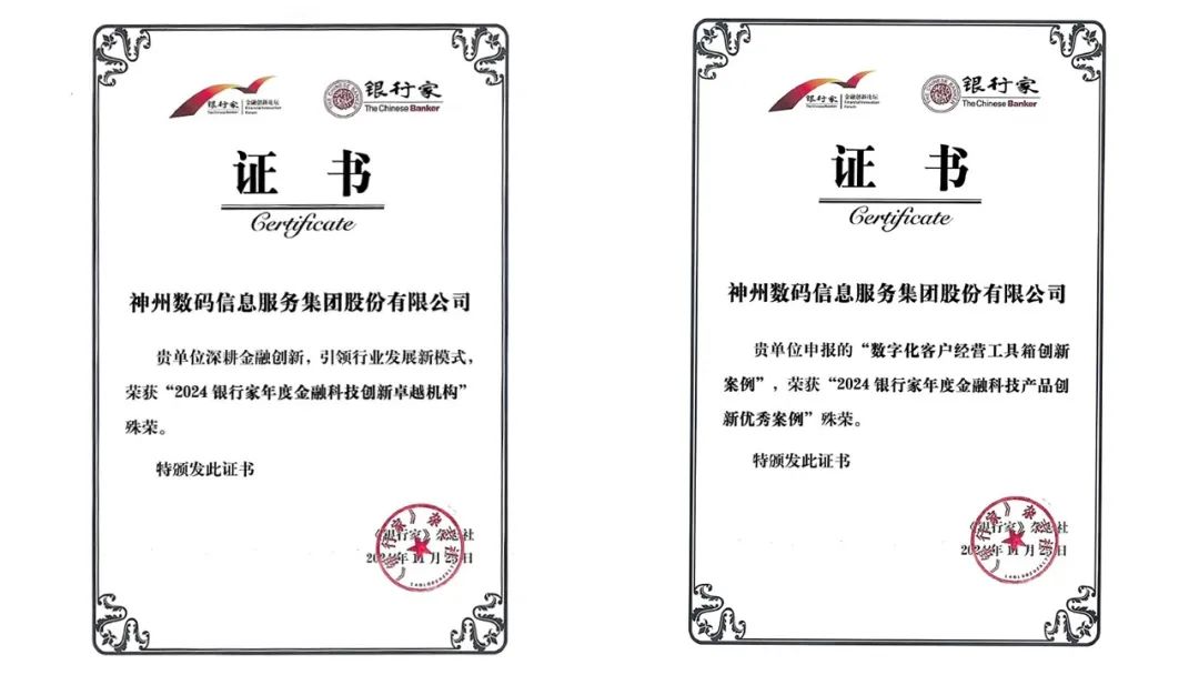 11月23日,由《银行家》杂志社组织,中国社会科学院财经战略研究院、中央财经大学中国互联网经济研究院、西南财经大学信托与理财研究所、《银行家》研究中心提供学术支持的“2024银行家金融创新论坛暨银行家金融创新成果发布会”在北京顺利召开。神州信息获评“2024银行家年度金融科技创新卓越机构”,神州信息推出的“数字化客户经营工具箱创新案例”荣获“2024银行家年度金融科技产品创新优秀案例”。