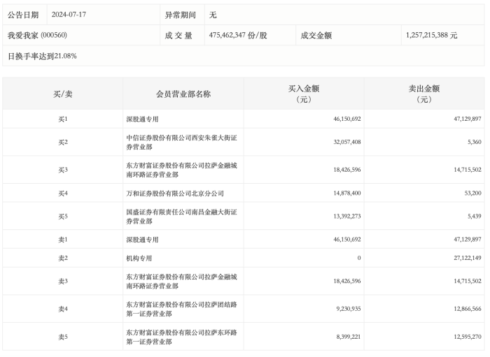 7月17日,我爱我家今日涨6.07%,龙虎榜数据显示,上榜营业部席位全天成交2.57亿元,占当日总成交金额比例为20.44%。其中,买入金额为1.43亿元,卖出金额为1.14亿元,合计净买入2804.21万元。
