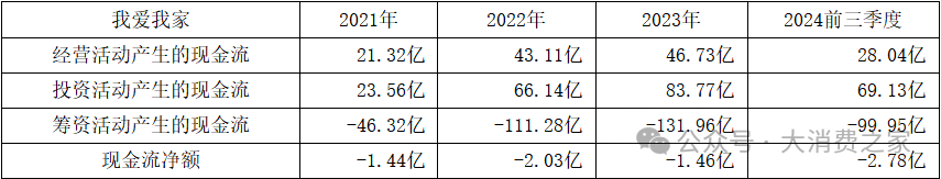 表3 我爱我家2021年至2024年前三季度现金流情况