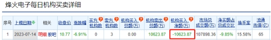 龙虎榜数据显示,烽火电子卖出金额最大的前五名中,有3家机构专用席位。经统计,烽火电子的机构席位今日净卖出金额为10623.87万元。