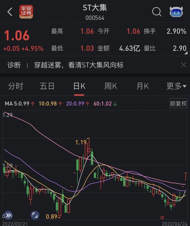 目前股价已达到1.06元,暂时脱离了退市风险区。