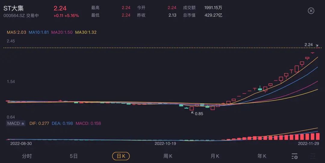 没办法,运气就是这么奇妙,喜提热点概念,ST大集股价直接从退市边缘干到了2块多。
