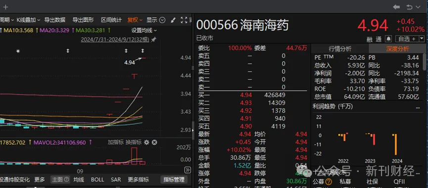 在全球经济的波诡云谲中,中国股市也经历了一轮又一轮的震荡。上证指数在2024年一路下探,险些跌破2700点大关。然而,有一只股票却在频繁创造奇迹,它就是海南海药,凭借连续五个涨停板的惊艳表现,成为了投资者眼中的香饽饽。但这股市的奇迹背后,却隐藏着与公司基本面完全不匹配的荒谬。根据2024年上半年的数据,海南海药的营收仅为5.93亿元,较去年同期大幅下降了38.16%,而净利润更是陷入了长达五年半的亏损泥潭,累计亏损额高达27.81亿元。这样的业绩,无疑给那些追涨的投资者们泼了一盆冷水。更令人忧虑的是,海南海药近年来屡屡爆出财务违规、资金被侵占、官司缠身等问题,频繁受到监管部门的质询。而这一系列乱象的核心人物,刘悉承,这位曾在公司中呼风唤雨近20年的前副董事长,于2024年8月13日以个人原因为由辞职,悄无声息地淡出了公众视野。耐人寻味的是,就在刘悉承辞职公告发布的前夕,海南海药的股价还在一字涨停。这样的巧合,难免让人遐想联翩,是否有人利用市场的盲目乐观,暗中操纵股价,借机套现?