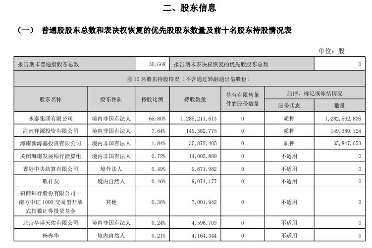 截至2024年11月28日,海德股份的总市值为148.549亿元。永泰集团有限公司是海德股份的第一大股东,持有公司最多的股份。海南祥源投资有限公司和海南新海基投资有限公司分别位列第二和第三大股东。截止到11月9日,海德股份的前十大流通股东合计持有15.24亿股,占总流通股比例为78.15%。该公司的整体质押股份达到了14.68亿股,质押比例为75.0%。