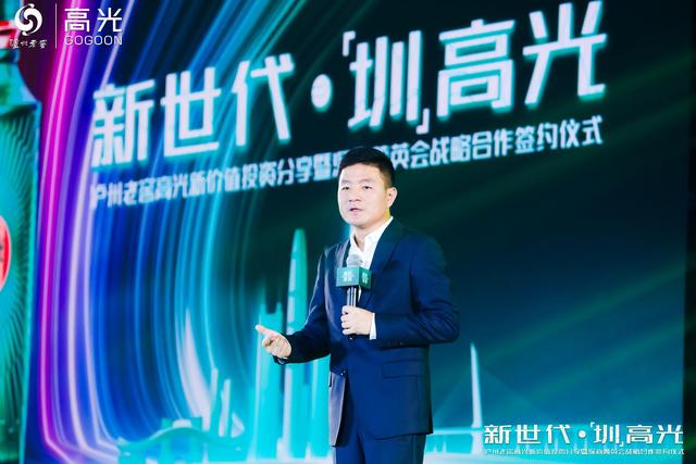 2021年10月24日,以“新世代·圳高光”为主题,泸州老窖·高光新价值投资分享暨深商菁英会战略合作签约仪式在深圳举行。“高光”以酒业新物种的独特风格,正式登陆大湾区,向深圳这座充满发展机会与未来气息的前沿之城致敬,为深圳与“高光”所共有的勇立潮头、敢为天下先的时代精神而喝彩。