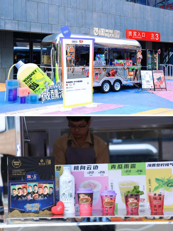 此次成都站,更是有百调MINIBOXX快闪车加盟比赛现场,为现场球迷带来吸睛十足的现调酒咖饮品。作为行业首个酒咖品牌,百调MINIBOXX潮酷风格已然突破了传统的白酒品牌形象,其主打的“浓香型柠檬气泡水”“泸州老窖咖啡”等特色现调酒咖饮品,懒人调酒便利包等,更是吸引现场球迷和行人纷纷种草打卡,更有网红达人慕名而来。