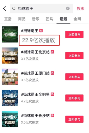 街球霸王,是国内首个由专业赛事运营方筹办的街头篮球联赛,赛事几乎集结了全中国顶级篮球厂牌,旨在为观众呈现最纯正的中国街球氛围。前NBA球员马布里、肖恩·马里昂、杰森·威廉姆斯、白乔丹、罗伯特·霍里等多位大牌球星纷纷加盟,为火热的赛事再添话题。据官方数据统计,截至目前,街球霸王话题平台播放量已超20亿次,位列同城热搜的首位及全国热搜榜前列。