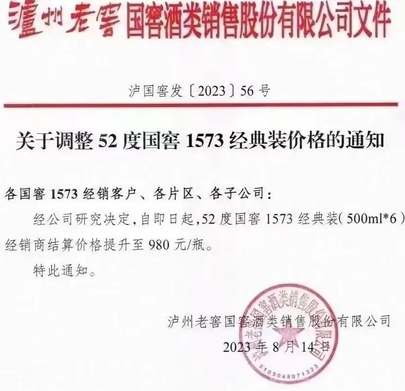 有“涨价王”之称的泸州老窖,却赶着在茅台涨价之前的2023年8月进行了涨价,直接把经销商结算价从960元上调至980元,超过当时飞天茅台969元的出厂价。