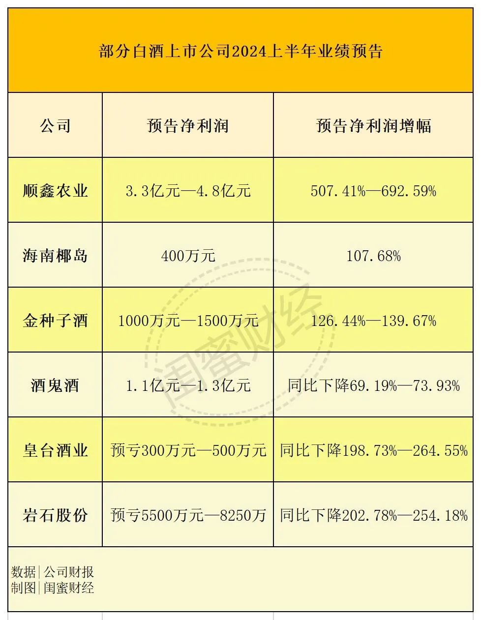 目前,酒鬼酒、金种子酒、皇台酒业、岩石股份等相继发布半年业绩预告。其中,金种子酒等3家酒企扭亏为盈,3家酒企业绩大幅预降,甚至预亏。