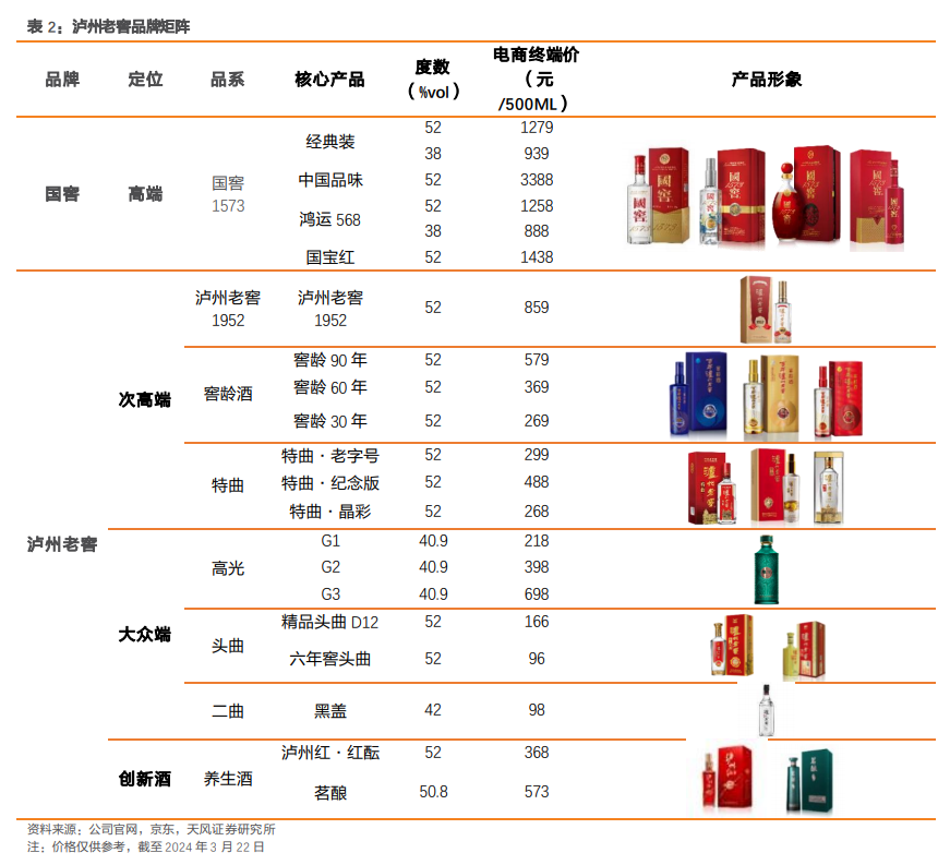 如今,泸州老窖现在主打“双品牌、三品系、五大单品”产品策略,重点打造由国窖 1573、窖龄酒、特曲、头曲和二曲构成的五大超级单品;价格带覆盖也是全段覆盖,锁定不同圈层的消费人群和不同的消费场景。不过主要收入大头还是在国窖1573,占比超过60%。