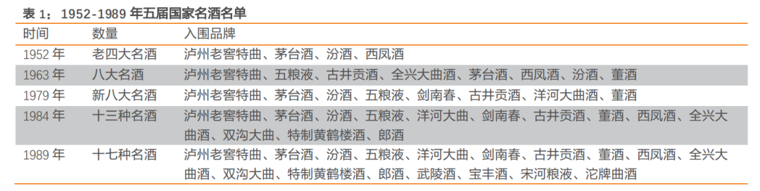 1952 年,泸州老窖与茅台、汾酒、西凤被评为“中国四大名酒”,此后又蝉联 1963年、1979 年、1984 年、1989 年“国家名酒”称号,是唯一蝉联5届国家名酒称号的浓香型白酒。