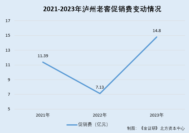 此外,据泸州老窖2022-2023年年报,2021-2023年,泸州老窖的促销费分别为11.39亿元、7.13亿元、14.8亿元。