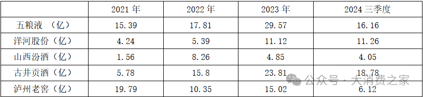 为了排除特殊年份特殊事件的影响,下表中列出了2024年三季度各家白酒企业有息资产和有息负债,均显示泸州老窖高有息资产和高有息负债特点,而五粮液、山西汾酒、古井贡酒和洋河股份则是高有息资产、低有息负债。具体为:泸州老窖有息资产321.15亿,有息负债125.49亿;五粮液有息资产1251.12亿,有息负债3.58亿;山西汾酒有息资产109.27亿,有息负债1.59亿;古井贡酒有息资产169.54亿,有息负债2.14亿;洋河股份有息资产271.58亿,有息负债0.24亿。