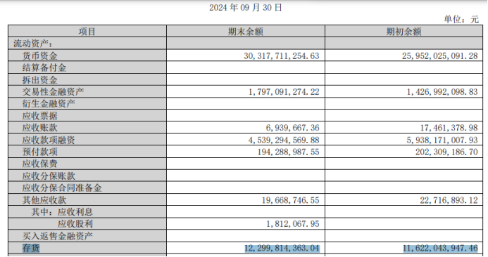 到了2024年,泸州老窖的存货规模进一步增加,至2024年6月底,创纪录地达到123.54亿元,到了9月底仍有123亿元的存货规模。