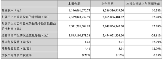 而古井贡酒一季度则实现营收91.46亿元,同比增长10.38%;实现净利润23.30亿元,同比增长12.78%;实现扣非净利润23.12亿元,同比增长12.78%。