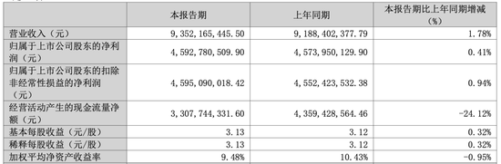 一季报显示,泸州老窖今年1—3月实现营收93.52亿元,同比微增1.78%;实现净利润45.93亿元,同比微增0.41%;实现扣非净利润45.95亿元,同比微增0.94%。