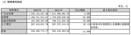 但是,到2024年,泸州老窖的净利润增幅断崖式下滑至1.71%,几乎可以忽略不计。这样一个毛利率高达87.62%,中高端酒毛利率高达91.85%,占营收比重高达88.42%,销售费用超35.38亿元,广告费超15.48亿元,管理费超11.01亿元的酒企,是不是有点那啥呢?