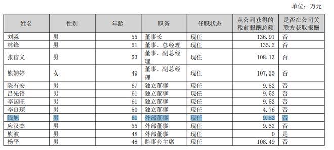 对于钱旭离职的原因,泸州老窖方面仅表示“个人原因”。南都湾财社记者注意到,钱旭今年61岁,是泸州老窖外部董事中年纪最长的。2024年,钱旭在泸州老窖的年薪是9.52万元。