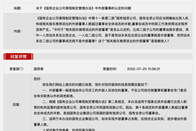 值得一提的是,不同于董事一职,外部董事一般是指由非公司员工的外部人员担任的董事,不在公司担任除董事和董事会专门委员会有关职务以外的其他职务。根据《国有企业公司章程制定管理办法》第二条规定,本办法适用于国家出资并由履行出资人职责的机构监管的国有独资公司、国有全资公司和国有控股公司。