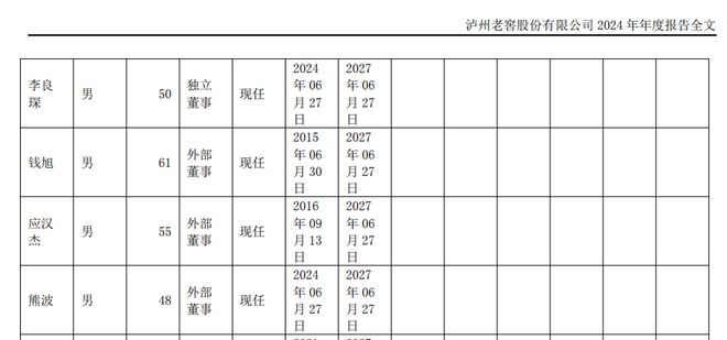 钱旭原定任期至公司第十一届董事会届满时止,即任期至2027年6月27日。资料显示,钱旭在2015年6月30日便担任泸州老窖外部董事,这也意味着他在公司任职已接近10年。