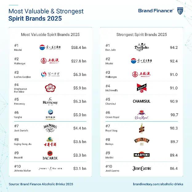近日,《Brand Finance(品牌金融)2025年全球酒精饮料品牌价值榜》发布。报告包含全球啤酒品牌价值50强、全球烈酒品牌价值50强与全球香槟葡萄酒品牌价值10强的权威排名。