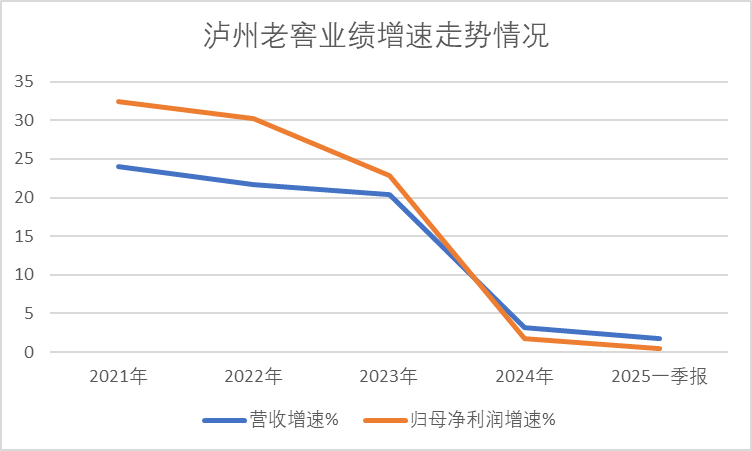实际上,泸州老窖2024年业绩增速呈现显著放缓态势,财报显示,公司全年营收同比仅增长3.19%,较2021-2023年23.96%、21.71%、20.34%的增速水平出现断崖式下滑。更令人担忧的是,归母净利润增速同样从2023年的27.79%骤降至1.71%,创下近年新低。