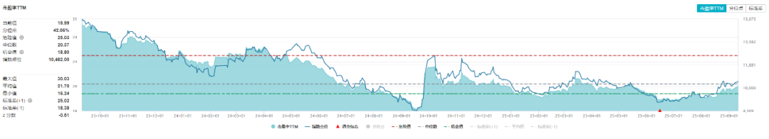 2015年中证指数有限公司发布了中证白酒指数(399997),指数以2008年12月31日为基日,基点1000。中证白酒指数在2021年的2月18日(春节假期前倒数第三个交易日)上摸历史最高点21663.85,并在当年6月7日创下历史次高点21096.45,此后就一路走低连跌4年,2024年9月19日跌至本轮最低点8251.41。截至9月10日早盘收市,中证白酒指数报10489.39点,总市值32,848.77亿,动态市盈率19.82,位于历史分位数的38.92%,低于指数中位数20.39。
