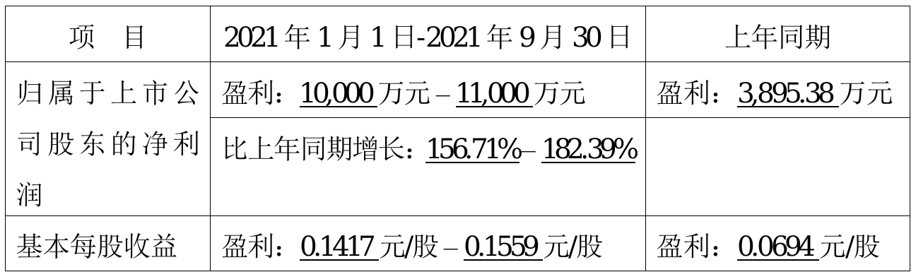 10月14日,苏常柴A(000570)近日发布2021年前三季度业绩预告公告,预计2021年前三季度实现归属于上市公司股东的净利润为10000万元–11000万元,比上年同期增加156.71%–182.39%。