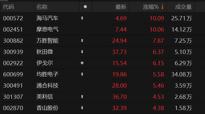 充电桩概念股走强 海马汽车涨停