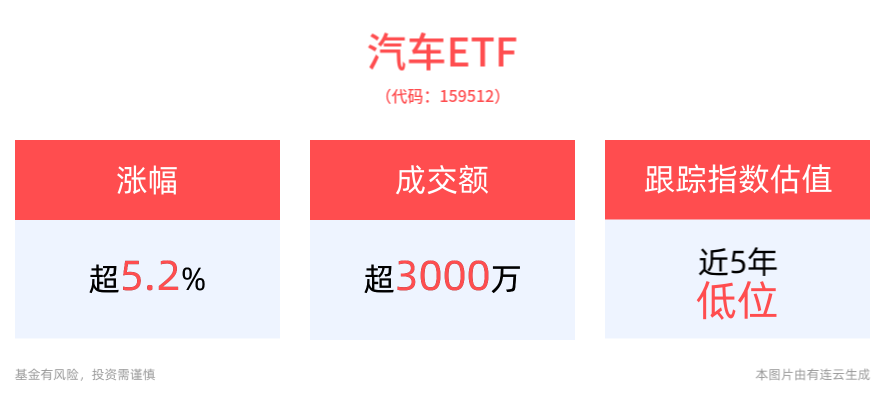 从估值层面来看,汽车ETF跟踪的中证全指汽车指数最新市盈率(PE-TTM)仅24.22倍,处于近5年18.81%的分位,即估值低于近5年81.19%以上的时间,处于历史低位。