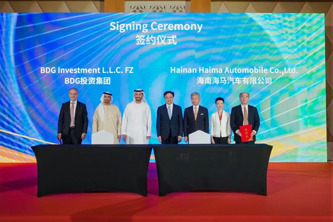 作为海南自贸港唯一具有乘用车及新能源汽车生产资质的汽车企业代表,海南海马汽车有限公司总经理卢国纲、副总经理董国强应邀参加推介会。卢国纲代表海马汽车,与阿联酋BDG投资集团负责人签署汽车出口合作备忘录。双方将共同研究在阿联酋开展深度合作,既包括整车产品出口、销售、售后服务及技术合作,更着力推动海马汽车首创的全产业链零碳排放汽车生态体系在中东落地。本次签约揭开了海南新能源汽车企业深度参与中东能源转型的战略序幕。