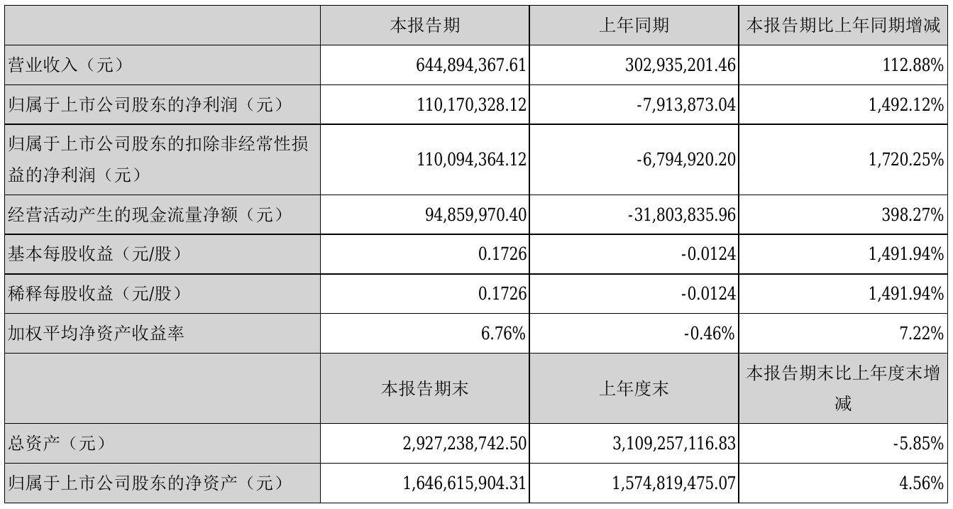 挖贝网8月27日,粤宏远A(000573)近日发布2021年半年度报告,报告期内营业收入644,894,367.61元,同比增加112.88%;净利110,170,328.12元,同比扭亏为盈。