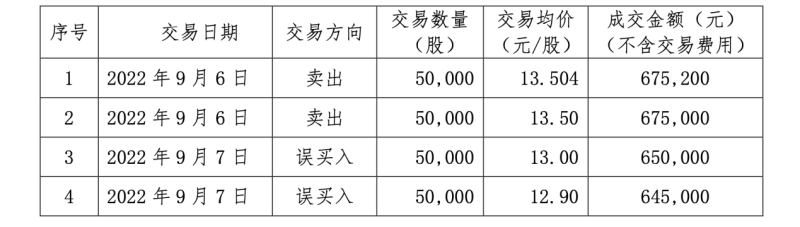 9月6日,胡成中以13.504元/股和13.5元/股的价格分别卖出5万股甘化科工的股票,成交金额分别为67.52万元和67.5万元。但在第二天又分别以13元/股和12.9元/股的价格误买入5万股,成交金额分别为65万元、64.5万元。
