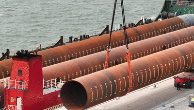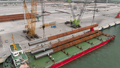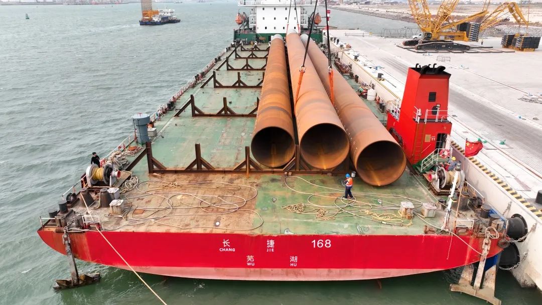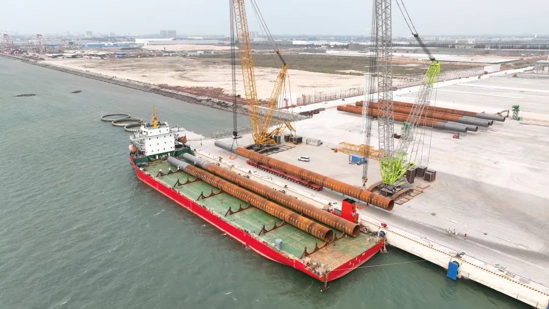 4月6日,“长捷168”轮安全靠泊北部湾港钦州码头大榄坪作业区3#泊位,装载8根/约5296立方米风电管桩,单件长90米,件重270吨,这标志着钦州码头新增货种——风电设备的装船作业进入常态化。