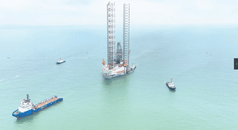 此次被拖带的“国湛”号是华南地区建造的第一座400英尺(约122米)的自升式钻井平台,整体高度超过40层楼,船体为三角形,总长97.87米,型宽79.55米,型深8.23米,作业水深121.93米,钻井深度9144米。平台有三条三角形桁架桩腿,桩腿全长170.22米,居住区有5层,可居住150人。