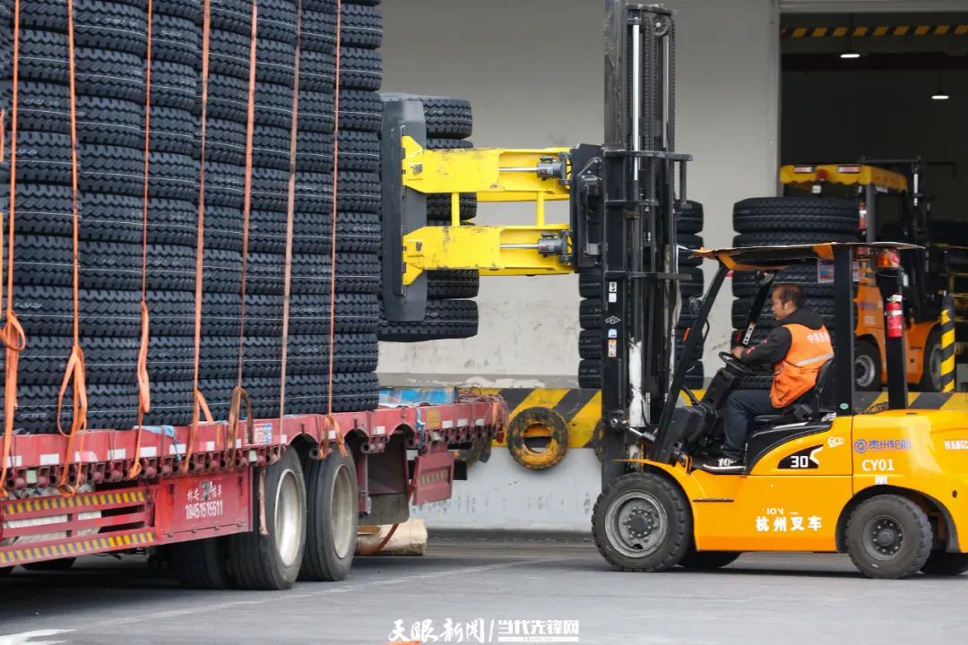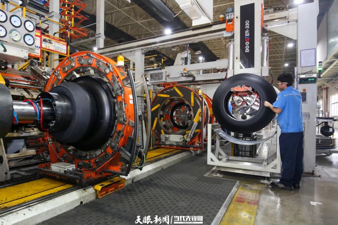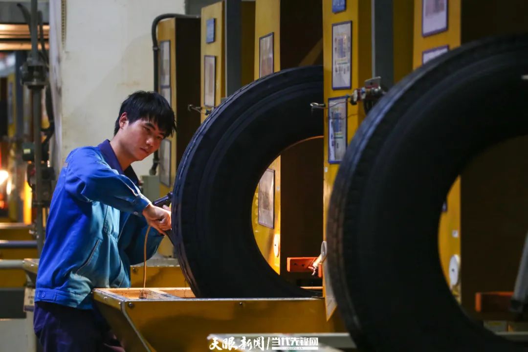 日前,记者在位于贵阳市修文县的贵州轮胎股份有限公司(以下简称“贵州轮胎”)载重子午胎分公司生产车间看到,偌大的生产车间内,工人们忙得不亦乐乎,智能化、信息化生产设备运转不息,工人正在批量赶制订单。