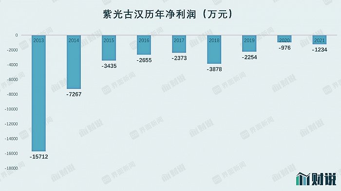 让人不解的是,紫光古汉的亏损由来已久,但启迪药业始终没有对此采取措施改进或止亏。从有记录以来的2013年至今,紫光古汉一直处于亏损状态。截止2021年底,紫光古汉的净资产已经为-4.6亿元。