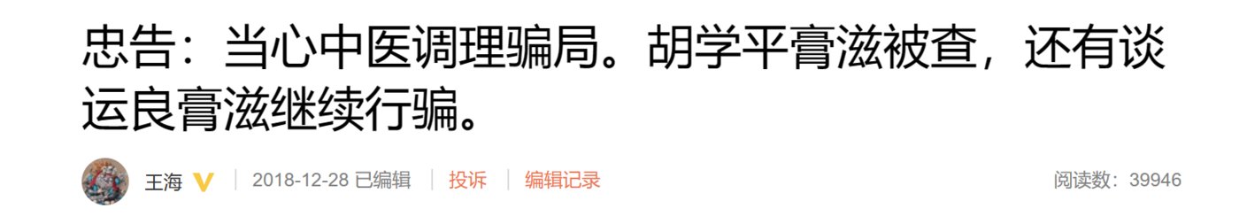 此外,网络职业打假人王海曾在2018年起底过谈运良,其文章显示,网络上又有声称“谈博士巢健康俱乐部”的中医调理的团伙在继续行骗,该团伙包装的“谈博士”竟然就是该企业武汉名实生物医药科技有限公司法人—谈运良。