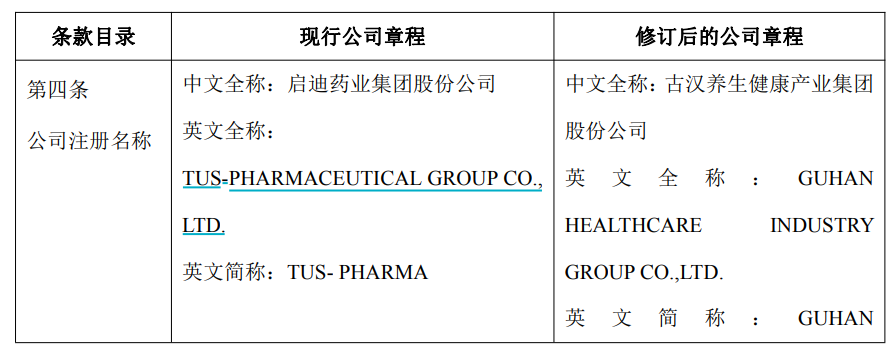 9月5日,启迪药业集团股份公司(证券简称:启迪药业)发布公告称,董事会同意将公司名称拟变更为“古汉养生健康产业集团股份公司”(申请名称,最终名称以市场监督管理部门核准为准)。
