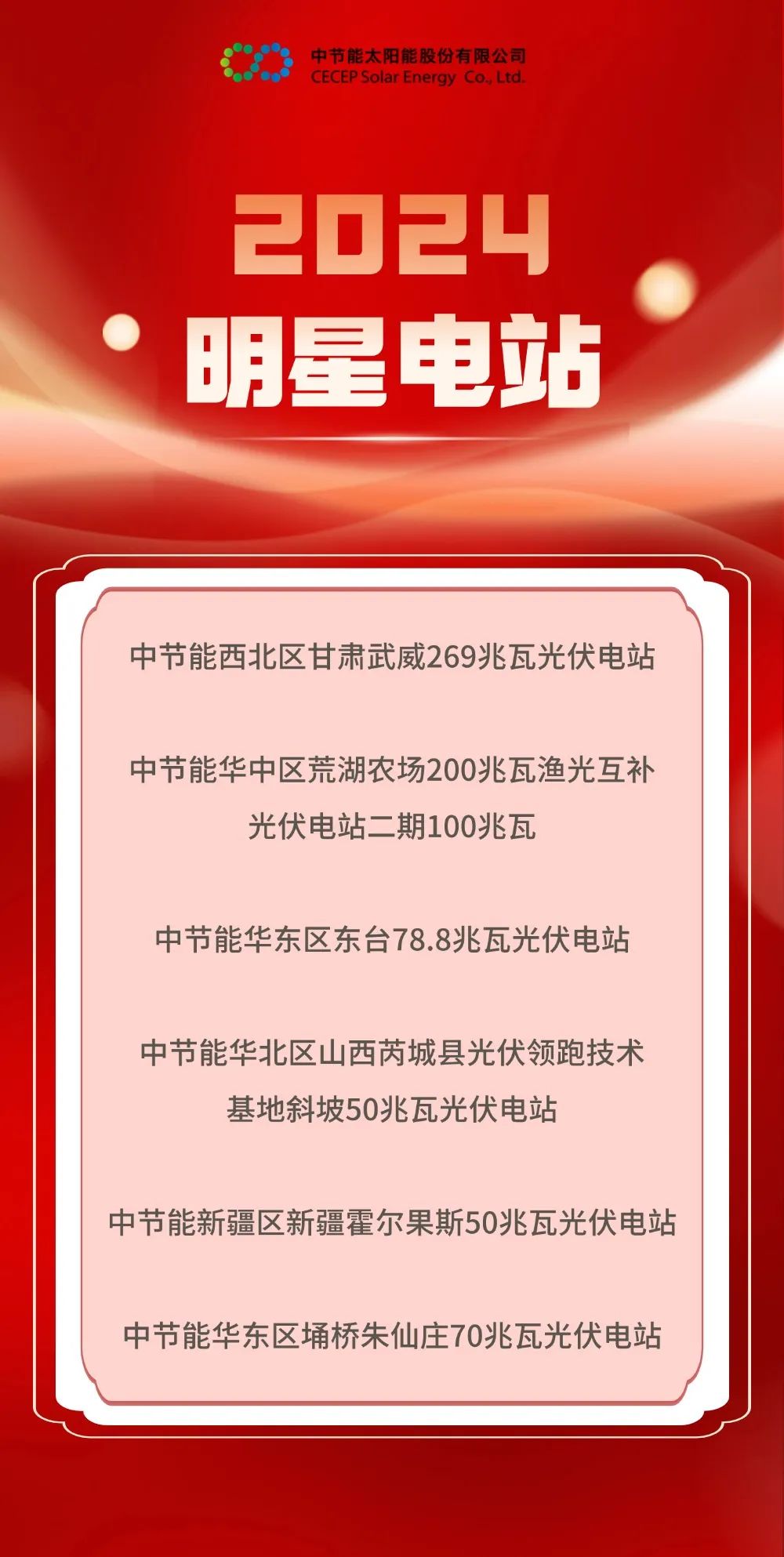 为进一步推广优秀项目,树立典型,创建更多可复制优秀项目模式,不断提升太阳能公司品牌价值。通过太阳能系统各单位自我推选、评委打分等评选环节,2025年太阳能公司年会上宣读了《关于颁发2024年度明星电站称号的决定》,授予6家电站“中节能太阳能股份有限公司2024年度明星电站”荣誉称号。