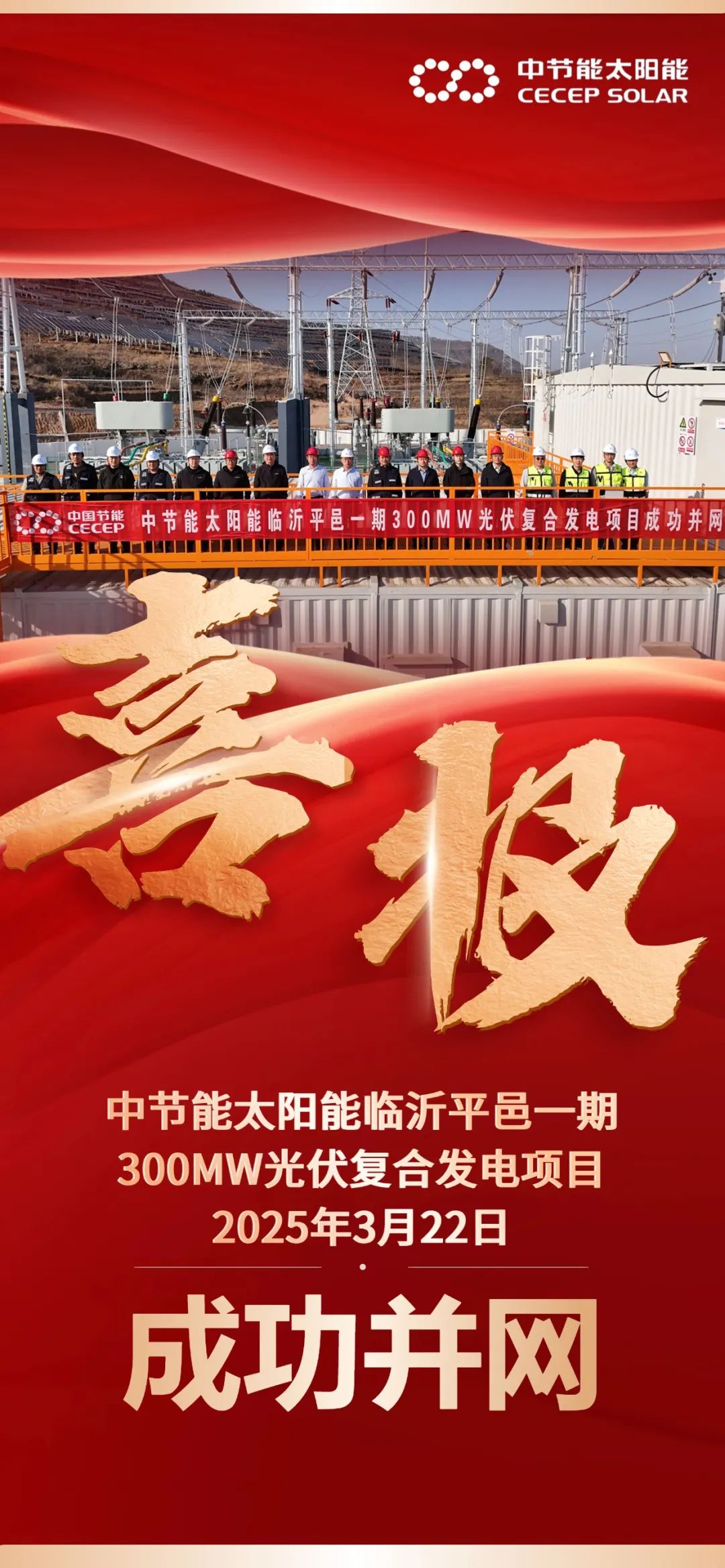 近日,太阳能公司华北区建设的中节能太阳能临沂平邑一期300MW光伏复合发电项目成功并网发电。