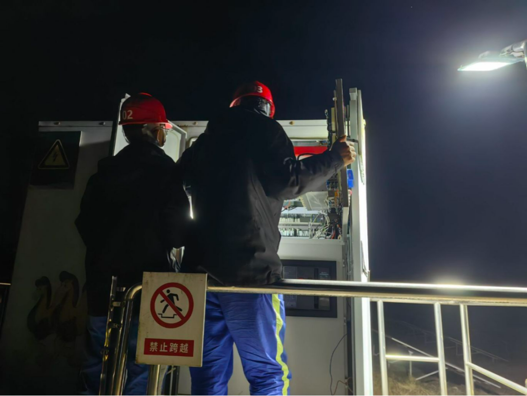 莲花电站在寒潮天气期间,对整个场区箱逆变设备开展封堵情况专项检查,严密筑牢防护屏障杜绝小动物进入;同步开展外线巡视及辐照仪检查等工作,全方位排查设备隐患、保障线路稳定,确保寒潮期间电站设备安全稳定运行、电力供应持续可靠。