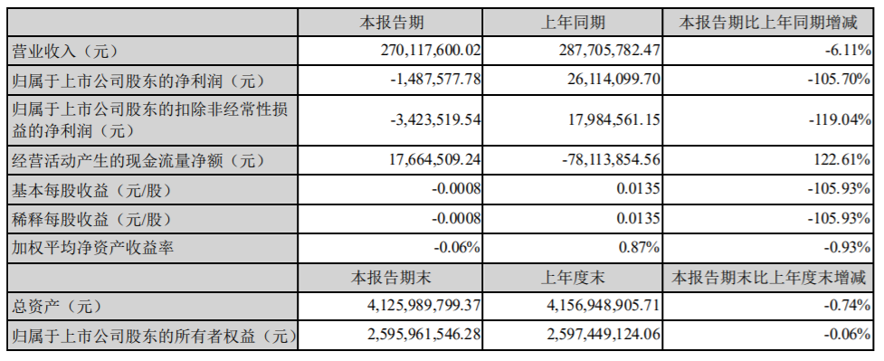 报告期内,平潭发展营业收入2.7亿元,同比降6.11%;归属于上市公司股东的净利润亏损148.76万元,同比降105.7%;归属于上市公司股东的扣除非经常性损益的净利润亏损342.35万元,同比降119.04%。