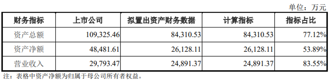 本次交易拟置出资产对本次交易是否构成重大资产重组的指标计算情况如下: