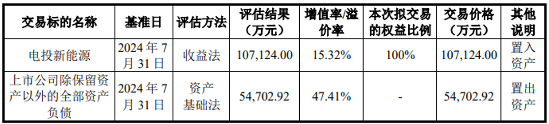 本次交易评估作价情况如下: